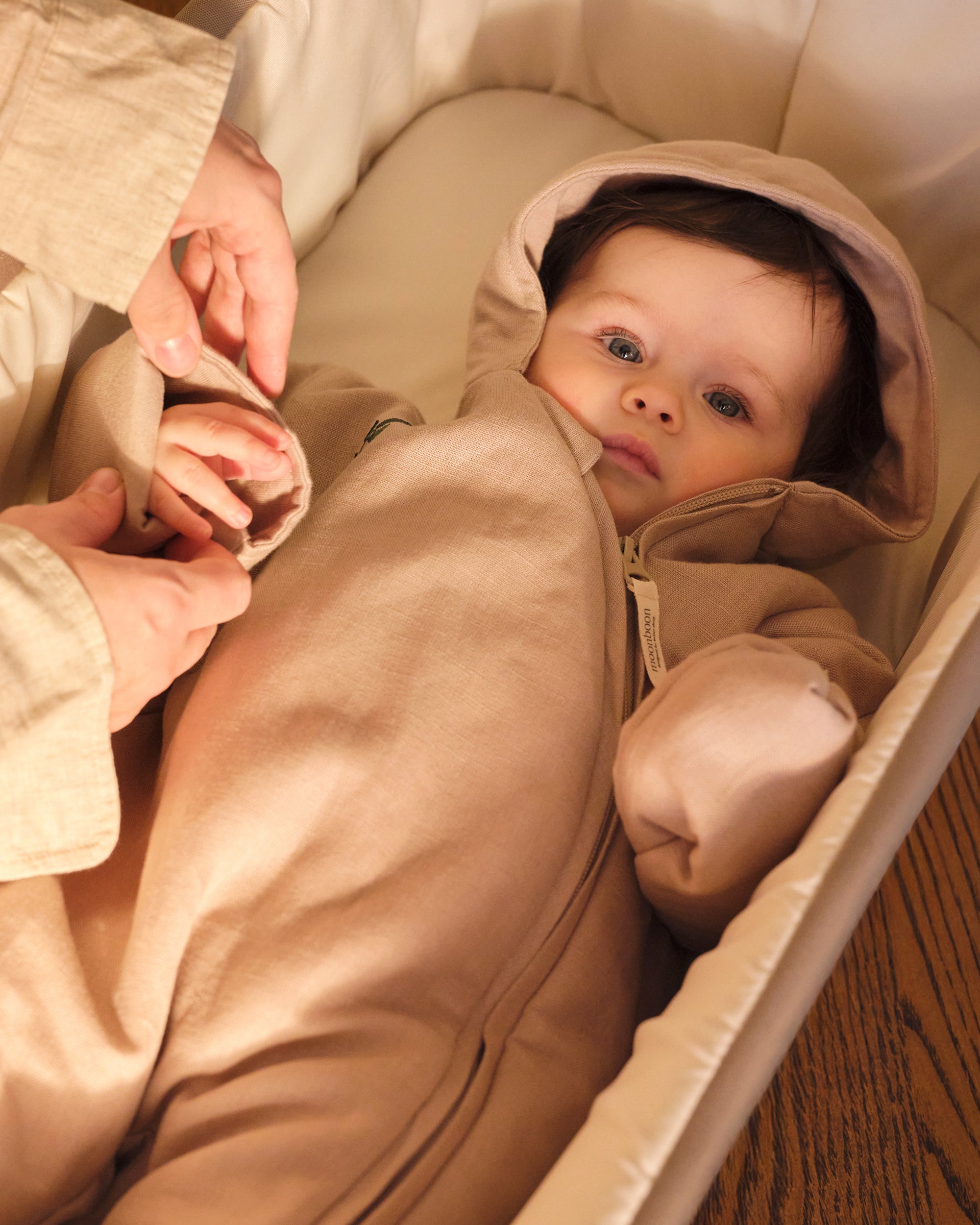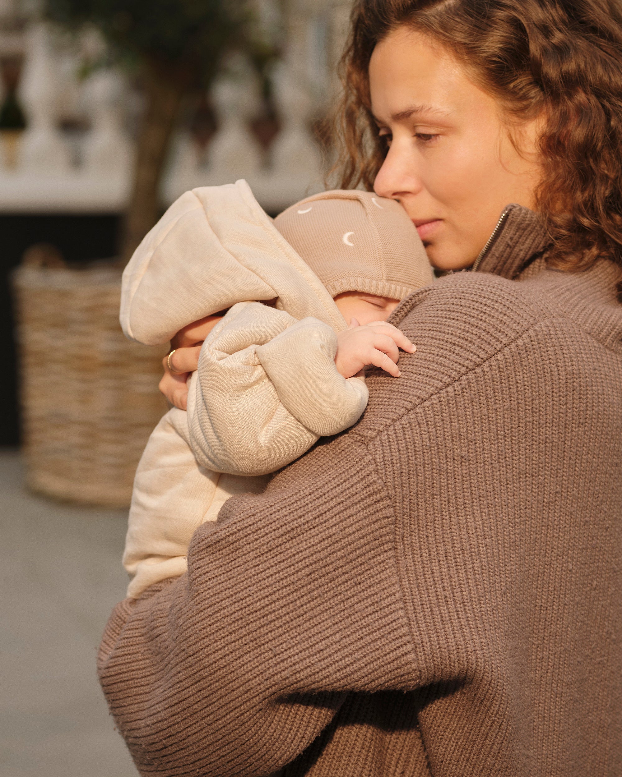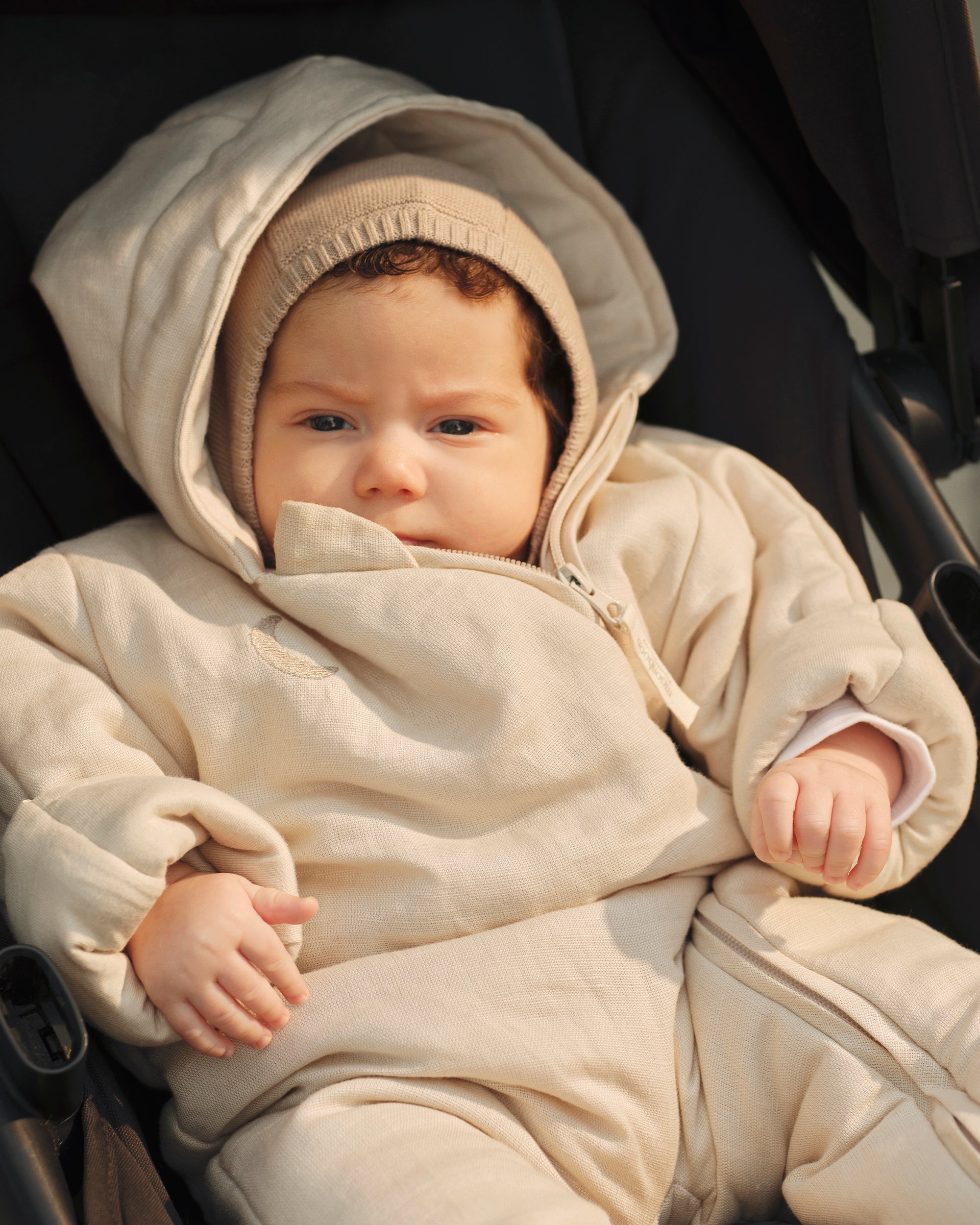 Notre combinaison toute douce est idéale pour les sorties en poussette et pour les promenades en porte-bébé, alliant style et confort dans tous les détails.