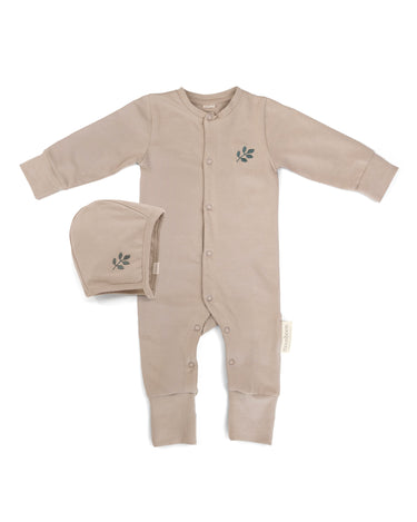 Pensé avec soin pour les tout premiers câlins de bébé, ce joli duo comprend une grenouillère toute douce et un bonnet confortable, pour garder votre tout-petit bien au chaud de la tête aux pieds.