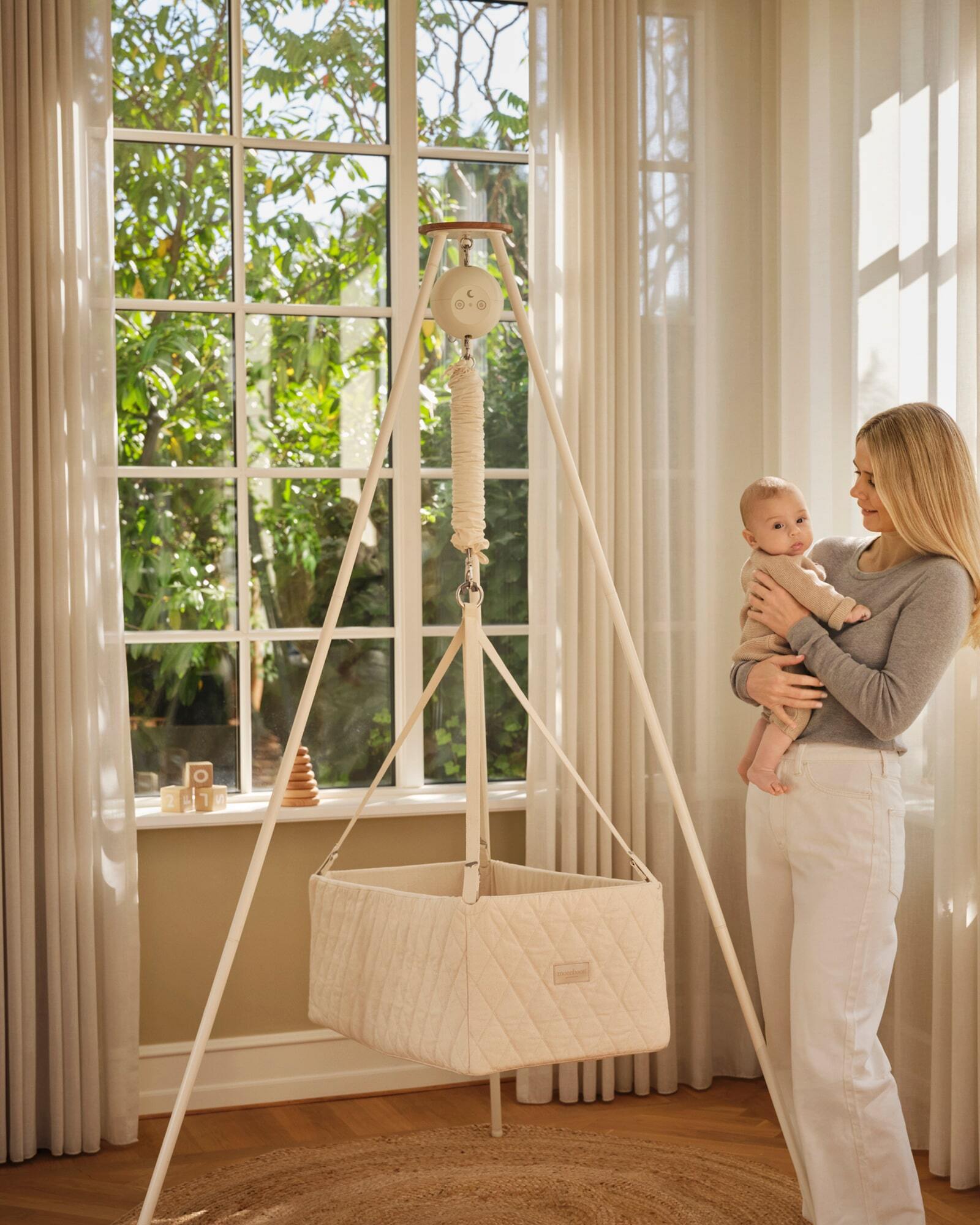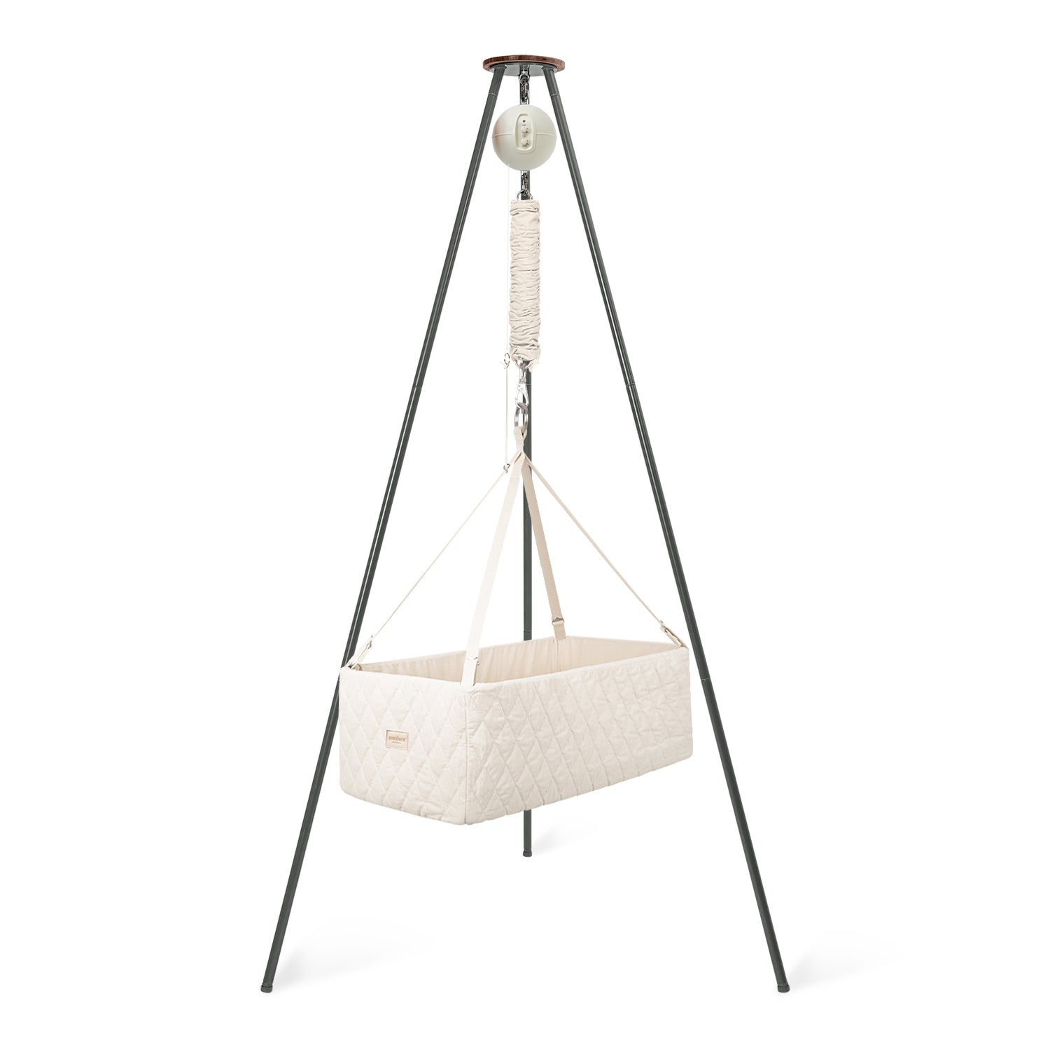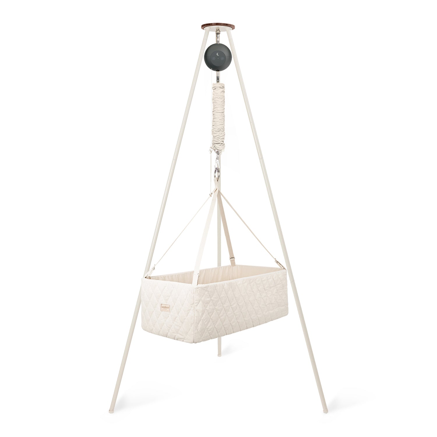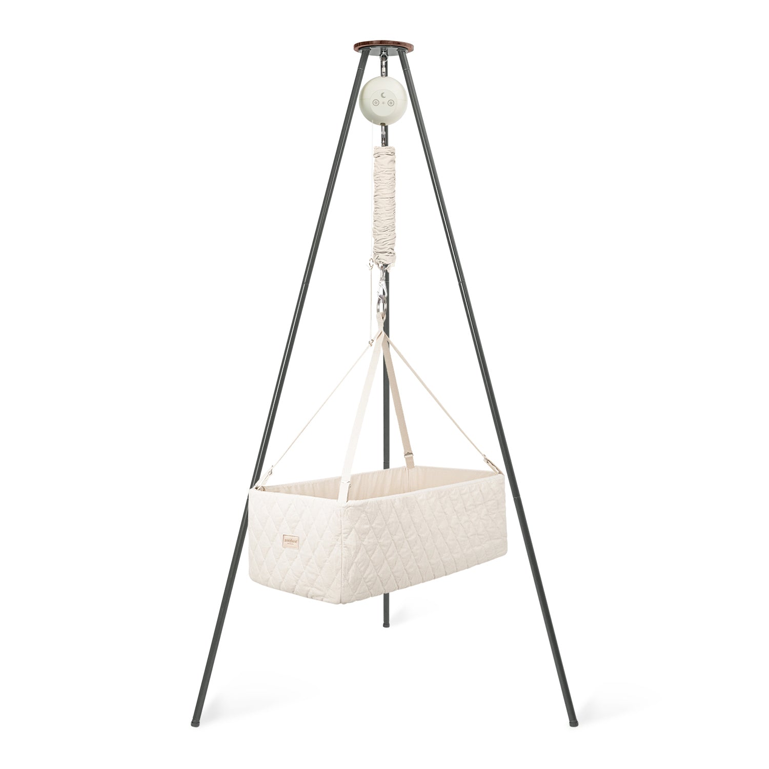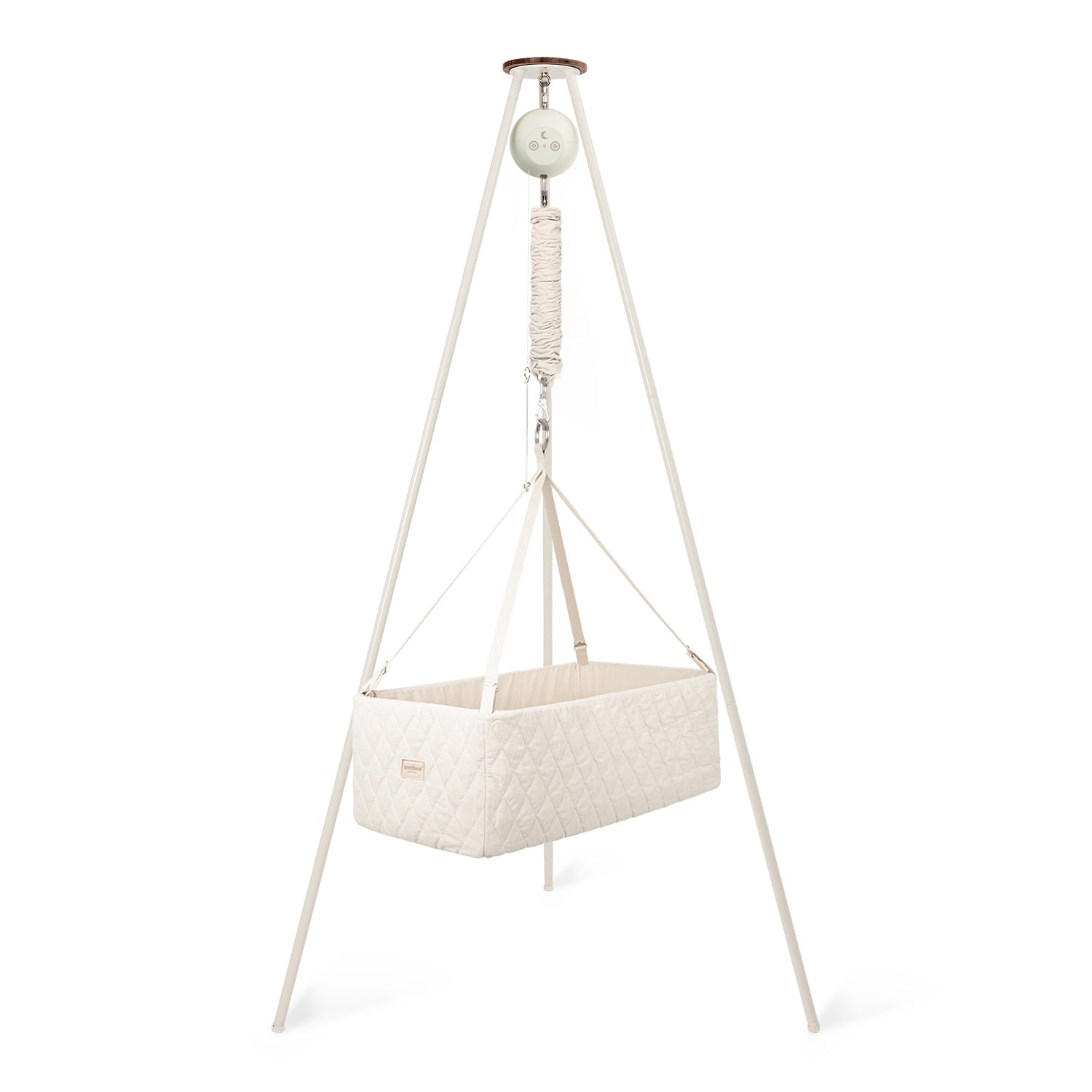 Offrez à votre enfant le meilleur environnement de sommeil possible. Le berceau douillet avec sa base plate offre un lit confortable qui est bercé de manière apaisante par notre moteur, tandis que le trépied est élégant dans toutes les pièces.