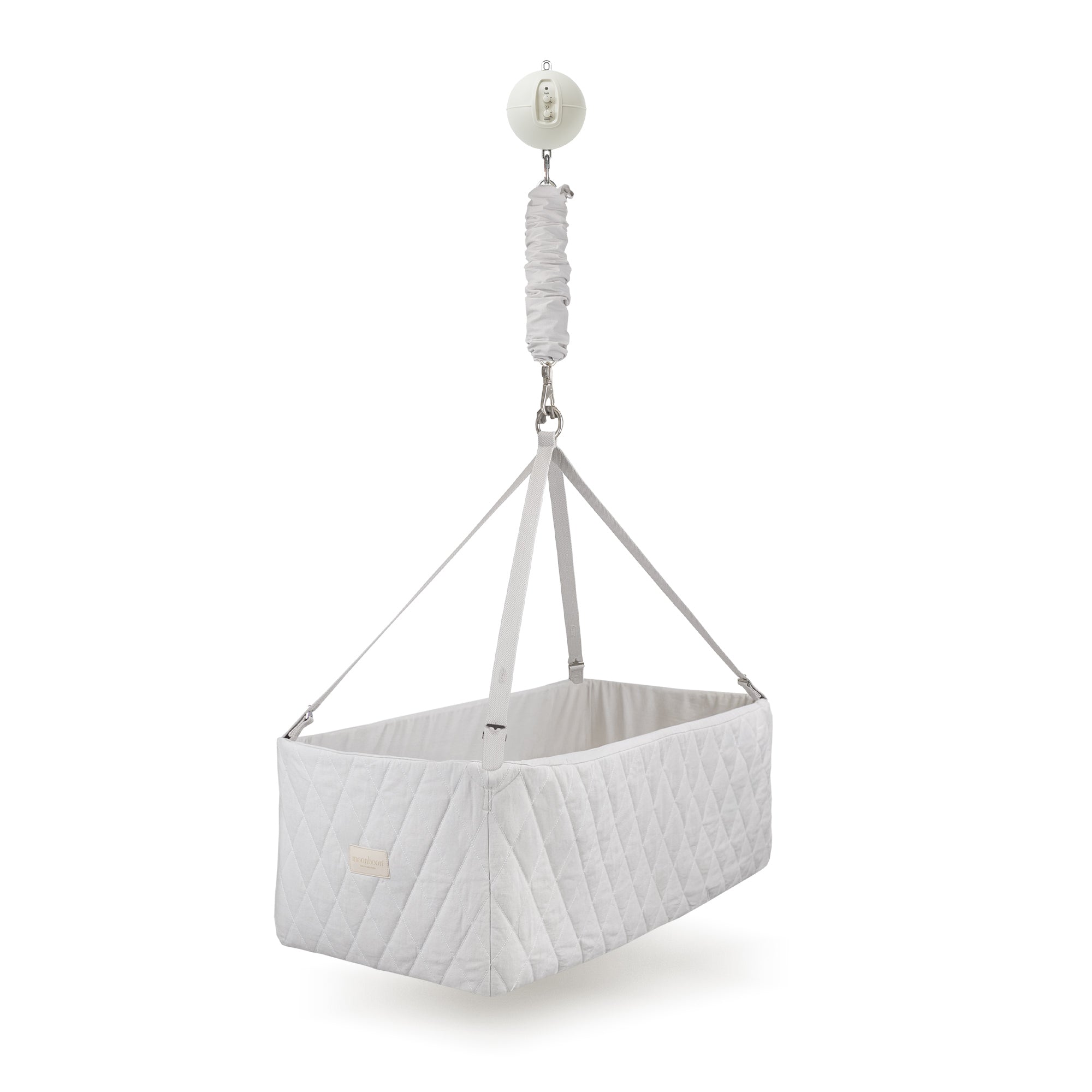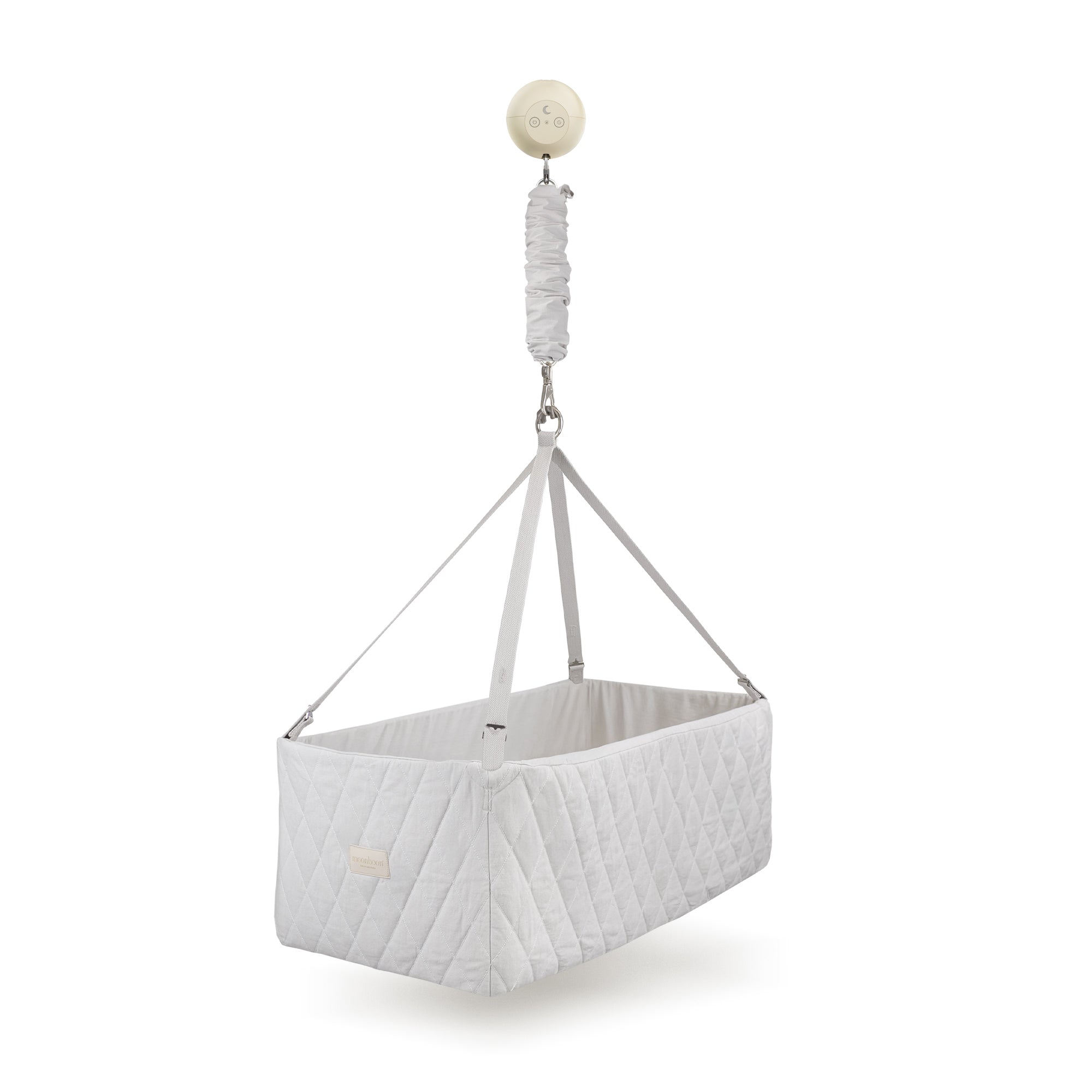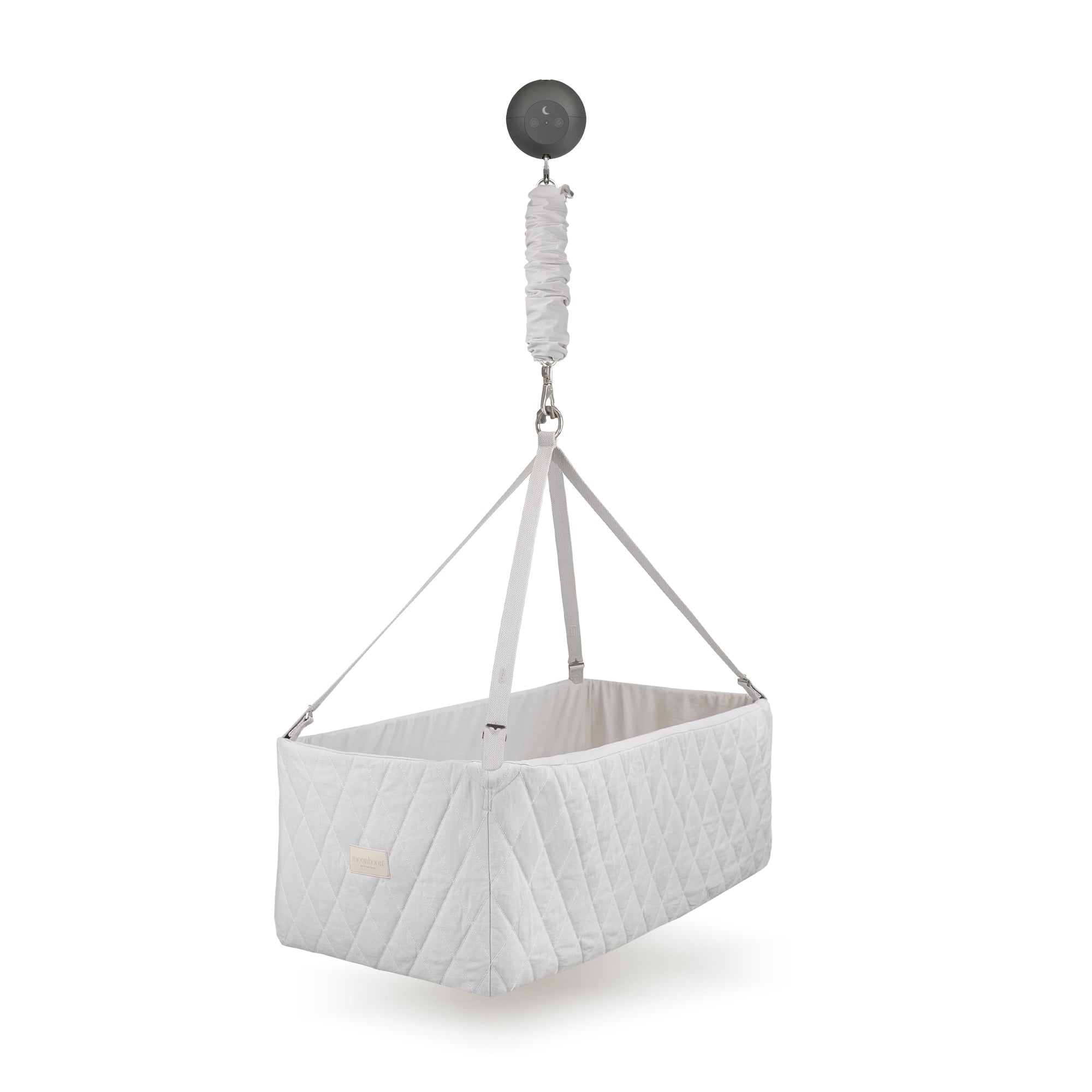 Le bercement doit être introduit doucement et lentement - soit manuellement, soit avec notre moteur Moonboon. Vous pouvez progressivement augmenter le rythme et la durée du bercement à mesure que votre bébé s'y habitue. Vous apprendrez vite ce qui vous convient.